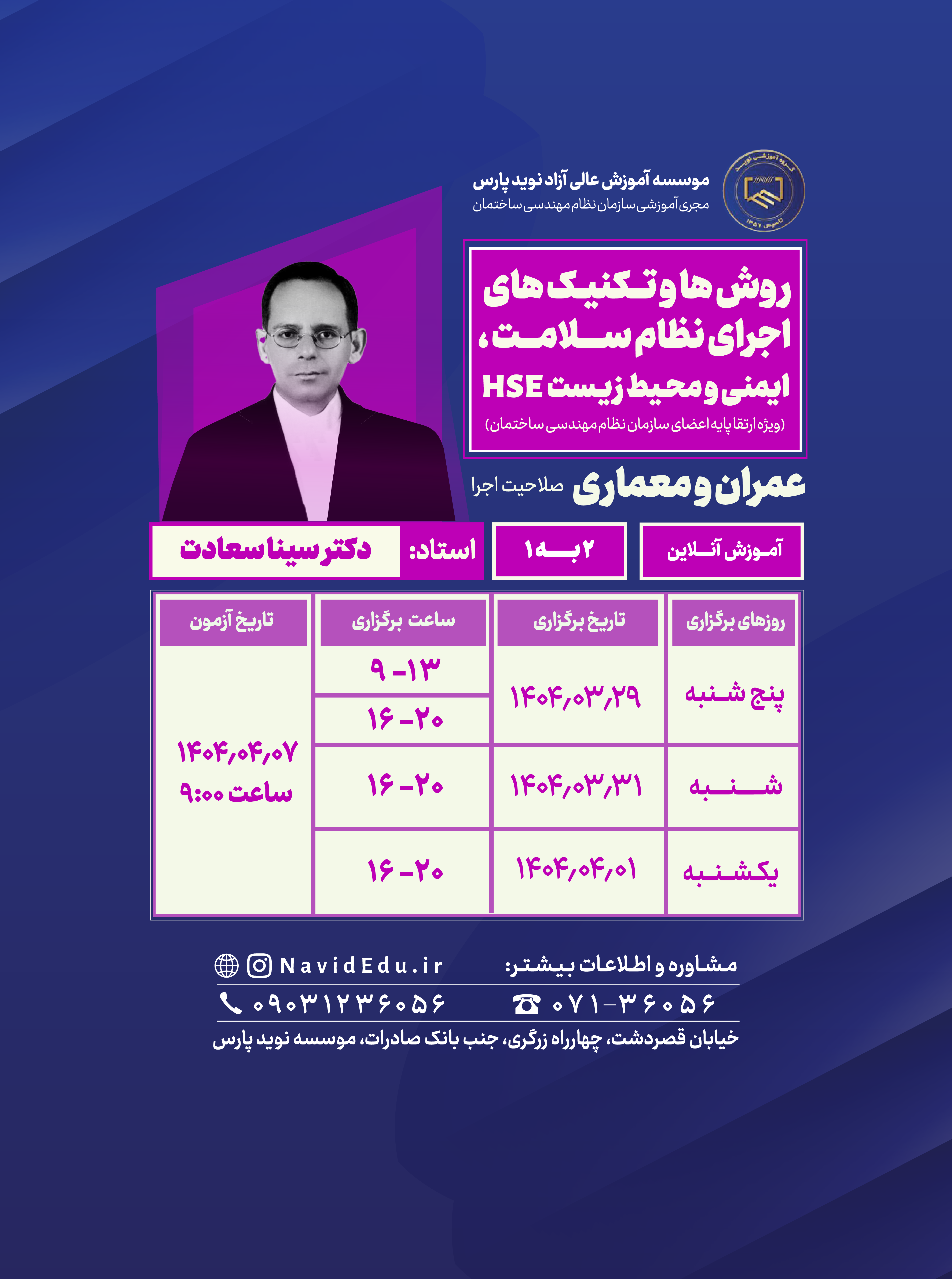 روش ها و تکنیک های اجرای نظام سلامت ، ایمنی و محیط زیست HSE (عمران و معماری – اجرا – ۲ به ۱ )