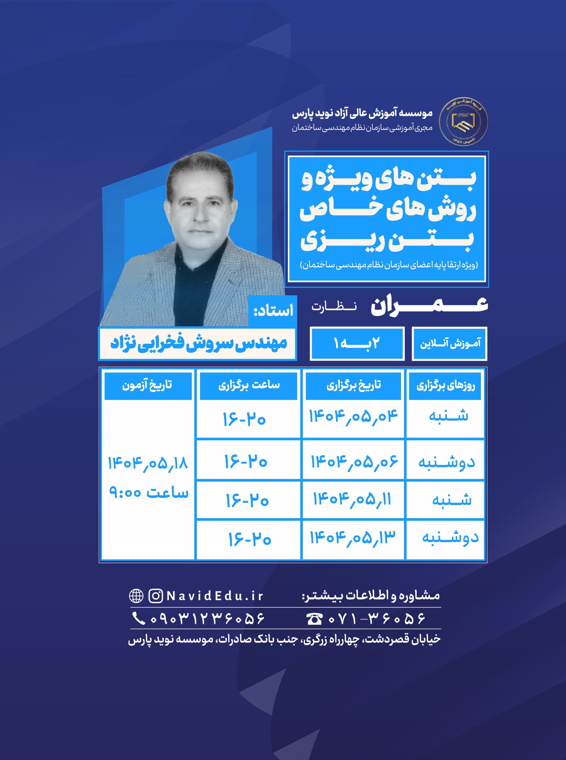 بتن های ویژه و روش های خاص بتن ریزی  (عمران  – نظارت – ارتقا پایه  ۲ به ۱ )