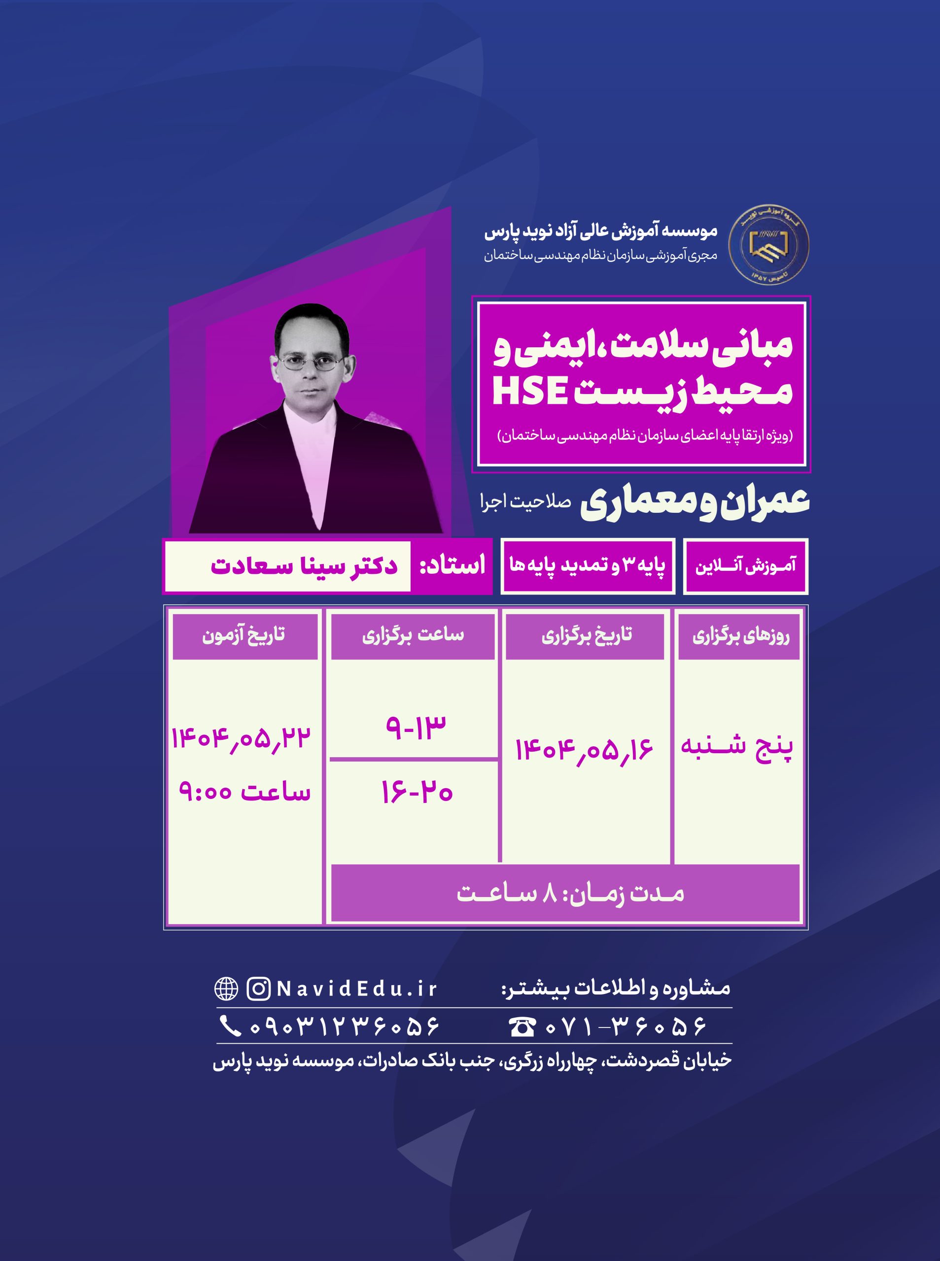 مبانی سلامت،ایمنی و محیط زیست HSE (عمران و معماری – اجرا – تمدید و اخذ پایه ۳ )