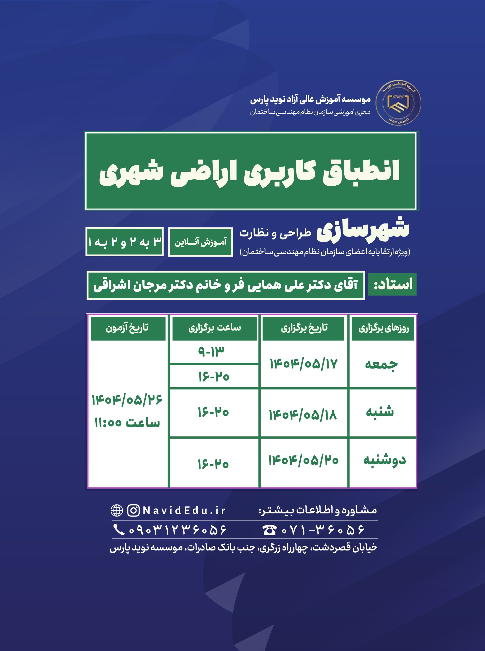 انطباق کاربری اراضی شهری  (شهرسازی – طراحی و نظارت – ارتقا پایه ۳ به ۲ و ۲ به ۱ )